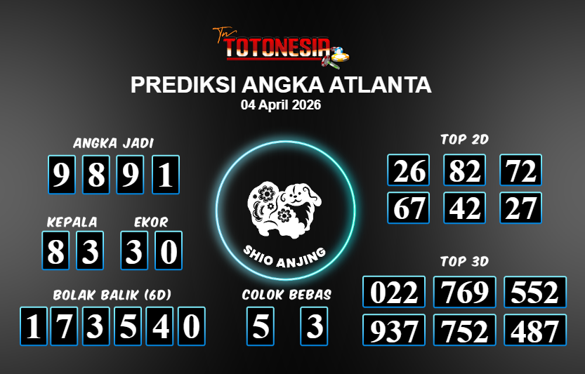 Toto Nesia : Bocoran Prediksi Togel ATLANTA Tanggal 04 APRIL 2026