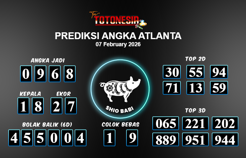 Toto Nesia : Bocoran Prediksi Togel ATLANTA Tanggal 07 FEBUARI 2026