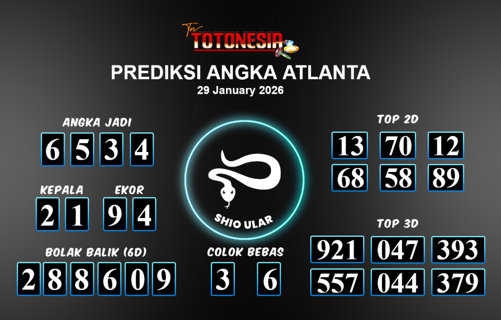 Toto Nesia : Bocoran Prediksi Togel ATLANTA Tanggal 29 JANUARI 2026
