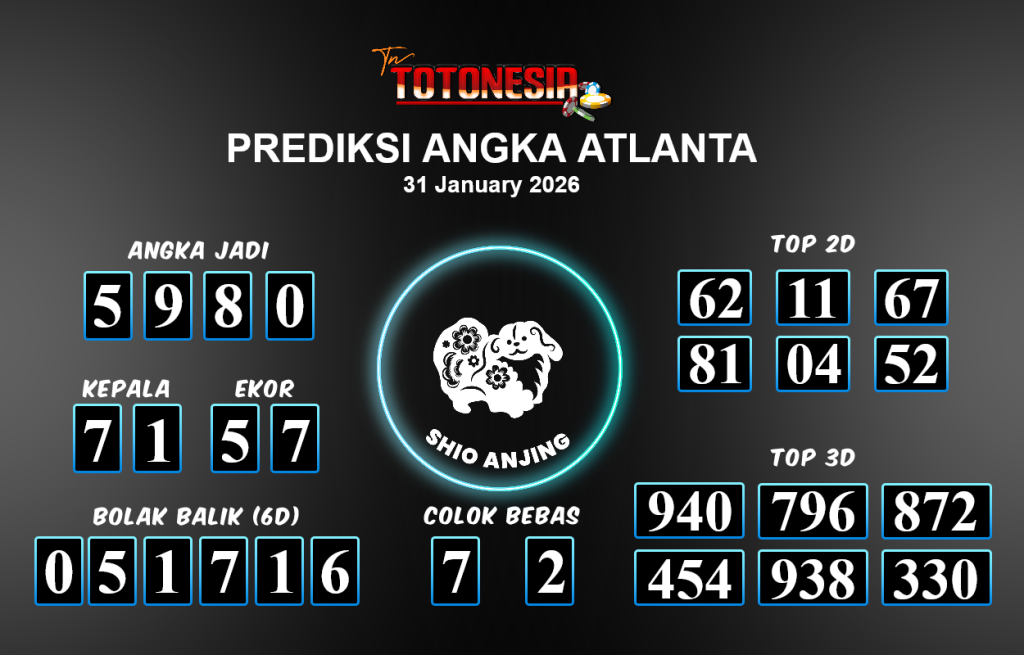 Prediksi ATLANTA adalah perhitungan nomor togel unggulan dari agen suhu togel yang menyajikan angka prediksi paling akurat, sehingga memberikan banyak keuntungan saat bermain di pasar togel ATLANTA. TotoNesia adalah prediksi dengan rasio kemenangan tertinggi di Indonesia. Sebagai penyedia togel yang dapat dipercaya, kami bertekad untuk memberikan ramalan togel yang handal dengan hadiah terbesarnya. Maka dari itu, jangan sampai terlewatkan prediksi bandar togel dengan hadiah terbanyak bet 100 dari pasar togel terbaik ATLANTA Daftar sekarang juga di bandar.