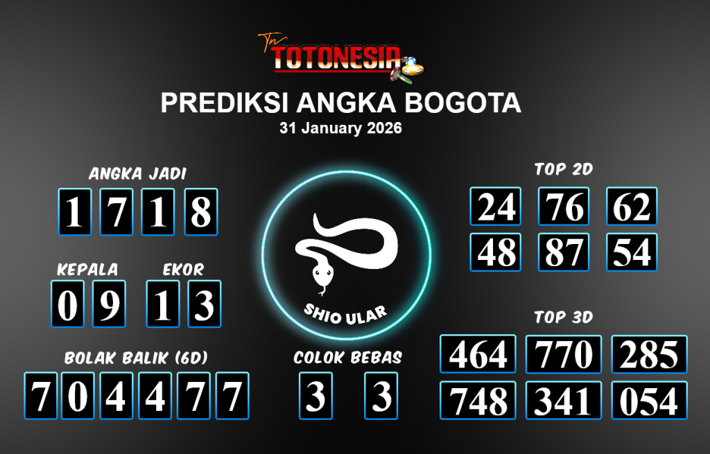 Prediksi BOGOTA adalah perhitungan nomor togel unggulan dari agen suhu togel yang menyajikan angka prediksi paling akurat, sehingga memberikan banyak keuntungan saat bermain di pasar togel BOGOTA. TotoNesia adalah prediksi dengan rasio kemenangan tertinggi di Indonesia. Sebagai penyedia togel yang dapat dipercaya, kami bertekad untuk memberikan ramalan togel yang handal dengan hadiah terbesarnya. Maka dari itu, jangan sampai terlewatkan prediksi bandar togel dengan hadiah terbanyak bet 100 dari pasar togel terbaik BOGOTA Daftar sekarang juga di bandar.