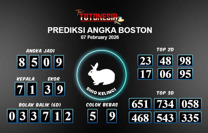 Toto Nesia : Bocoran Prediksi Togel BOSTON Tanggal 07 FEBUARI 2026