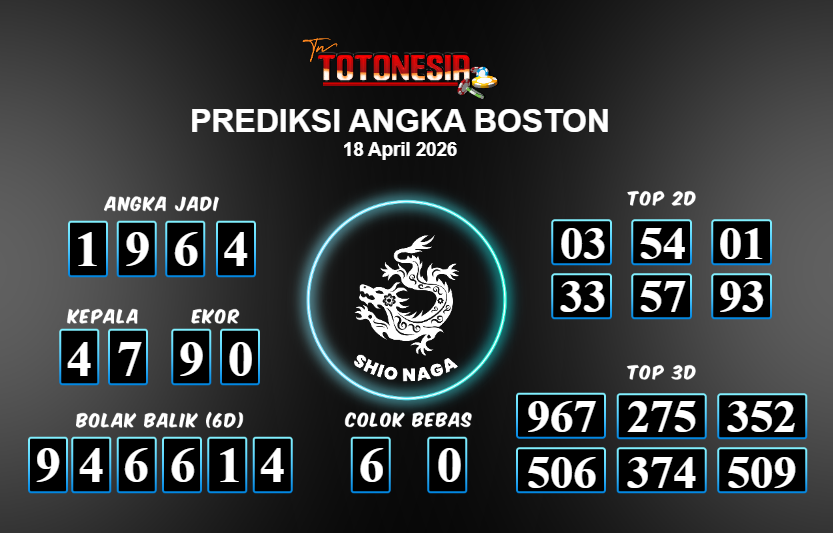 Toto Nesia : Bocoran Prediksi Togel BOSTON Tanggal 18 APRIL 2026