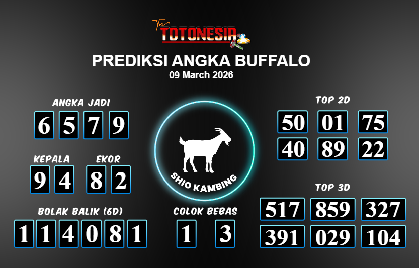 Toto Nesia : Bocoran Prediksi Togel BUFFALO Tanggal 09 MARET 2026