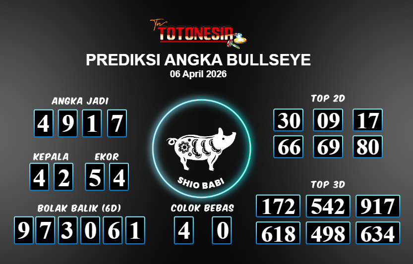 Toto Nesia : Bocoran Prediksi Togel BULLSEYE Tanggal 06 APRIL 2026