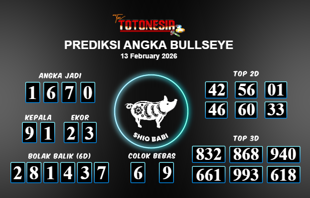 Toto Nesia : Bocoran Prediksi Togel BULLSEYE Tanggal 13 FEBUARI 2026
