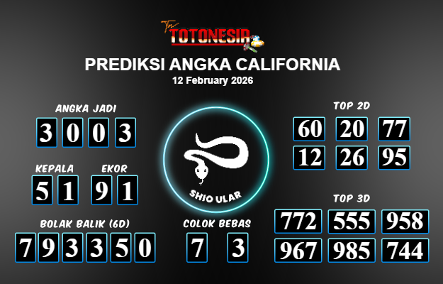 Toto Nesia : Bocoran Prediksi Togel CALIFORNIA Tanggal 12 FEBUARI 2026