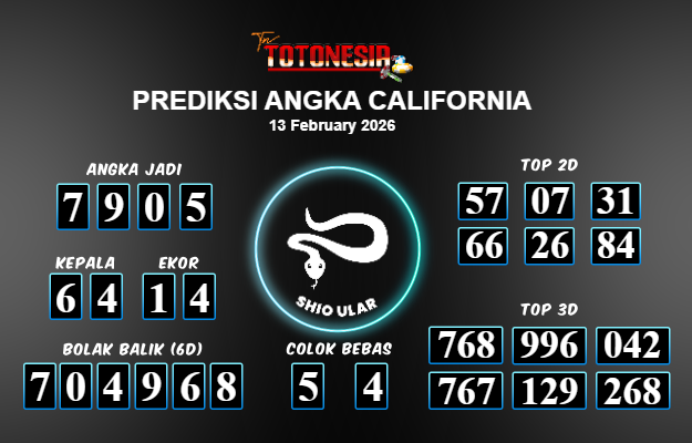 Toto Nesia : Bocoran Prediksi Togel CALIFORNIA Tanggal 13 FEBUARI 2026