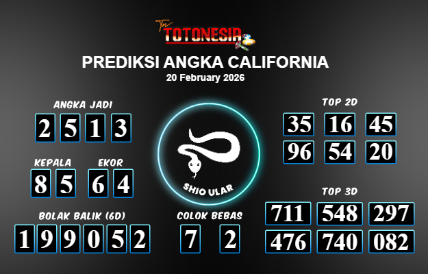 Toto Nesia : Bocoran Prediksi Togel CALIFORNIA Tanggal 20 FEBUARI 2026