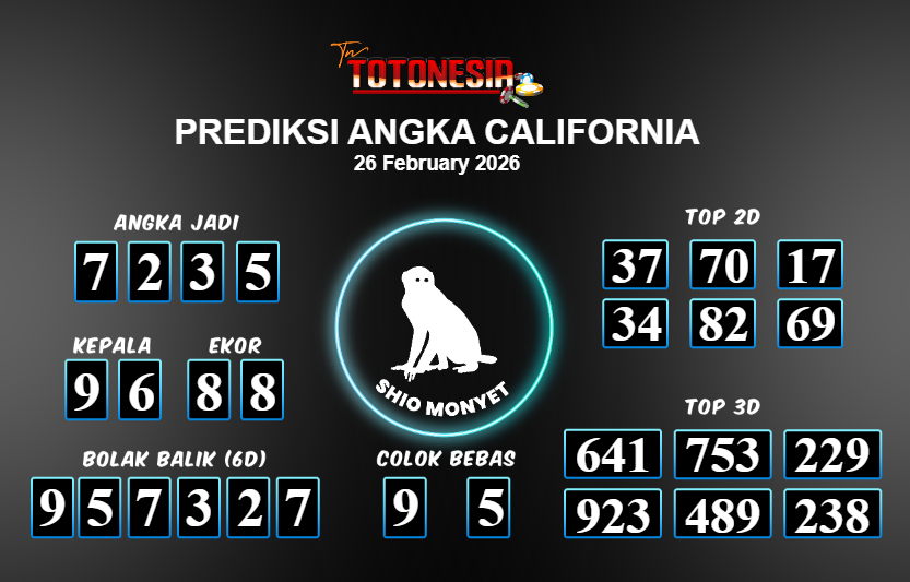 Toto Nesia : Bocoran Prediksi Togel CALIFORNIA Tanggal 26 FEBUARI 2026