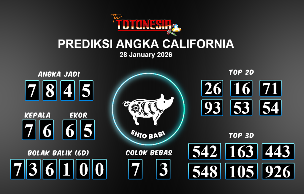 Prediksi CALIFORNIA adalah perhitungan nomor togel unggulan dari agen suhu togel yang menyajikan angka prediksi paling akurat, sehingga memberikan banyak keuntungan saat bermain di pasar togel CALIFORNIA. TotoNesia adalah prediksi dengan rasio kemenangan tertinggi di Indonesia. Sebagai penyedia togel yang dapat dipercaya, kami bertekad untuk memberikan ramalan togel yang handal dengan hadiah terbesarnya. Maka dari itu, jangan sampai terlewatkan prediksi bandar togel dengan hadiah terbanyak bet 100 dari pasar togel terbaik CALIFORNIA daftar sekarang juga di bandar.
