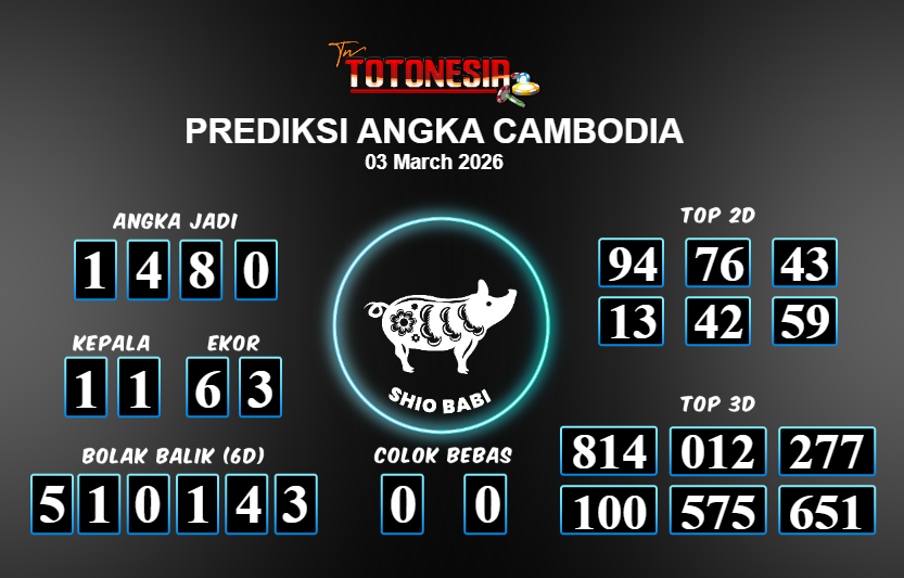 Toto Nesia : Bocoran Prediksi Togel CAMBODIA Tanggal 03 MARET 2026