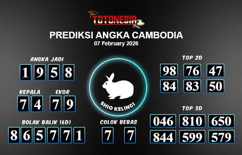 Toto Nesia : Bocoran Prediksi Togel CAMBODIA Tanggal 07 FEBUARI 2026