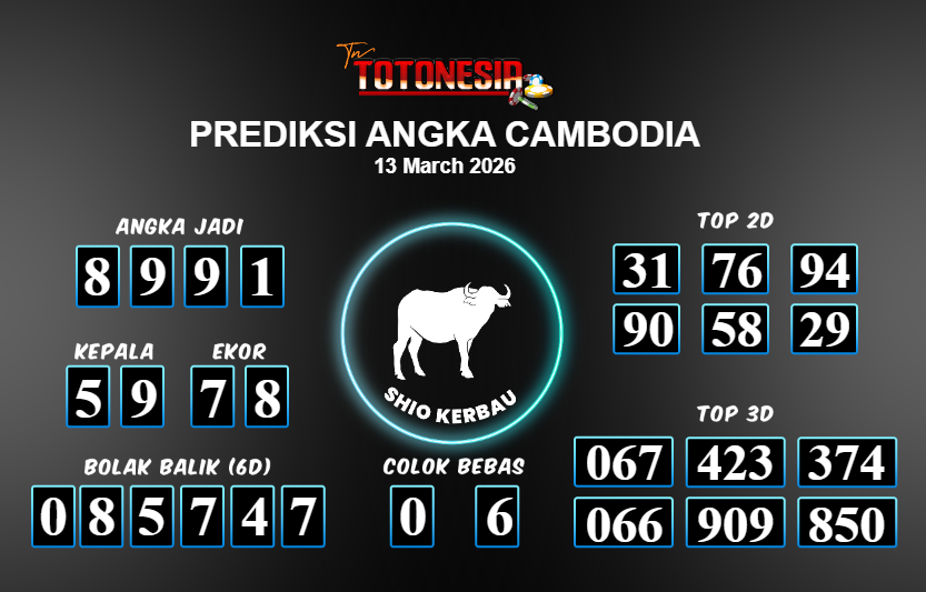 Toto Nesia : Bocoran Prediksi Togel CAMBODIA Tanggal 13 MARET 2026