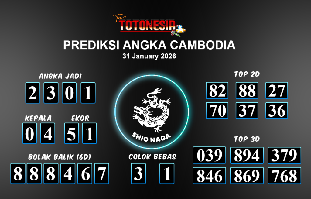 Toto Nesia : Bocoran Prediksi Togel CAMBODIA Tanggal 31 JANUARI 2026