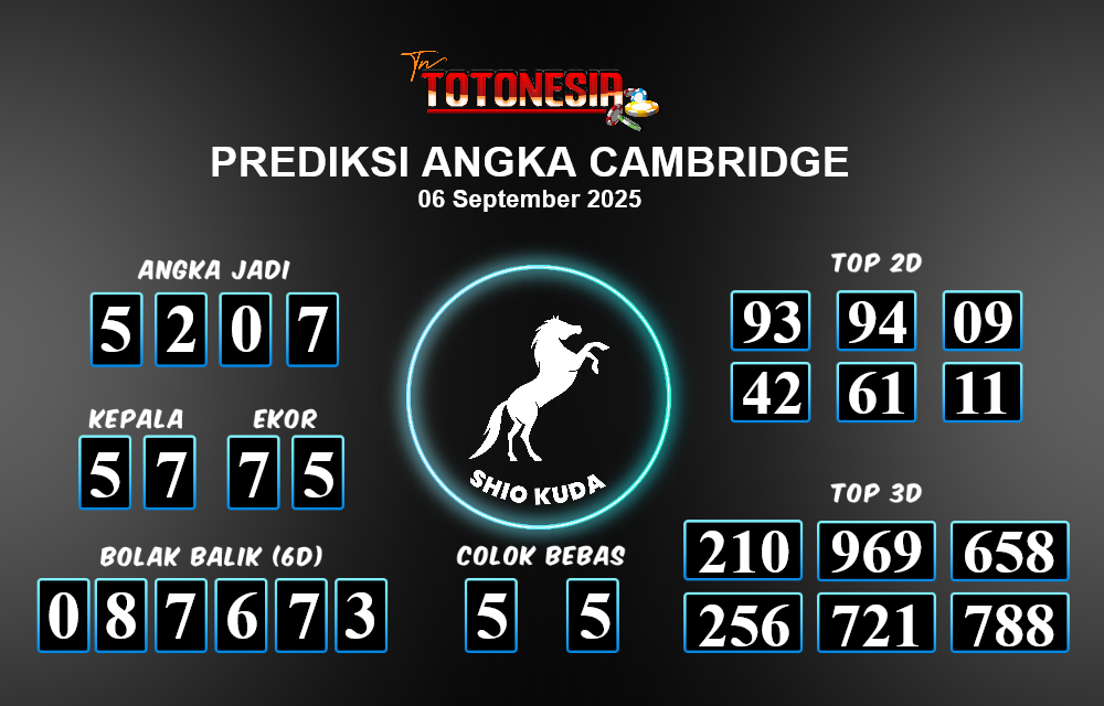 Toto Nesia : Bocoran Prediksi Togel CAMBRIDGE Tanggal 06 SEPTEMBER 2025