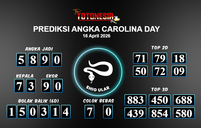 Toto Nesia : Bocoran Prediksi Togel CAROLINA DAY Tanggal 16 APRIL 2026