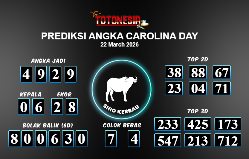 Toto Nesia : Bocoran Prediksi Togel CAROLINA DAY Tanggal 22 MARET 2026
