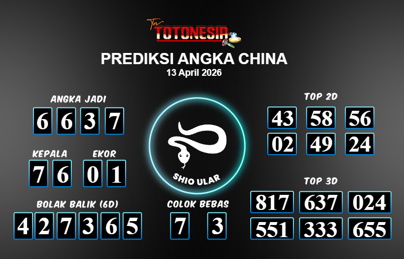 Toto Nesia : Bocoran Prediksi Togel CHINA Tanggal 13 APRIL 2026