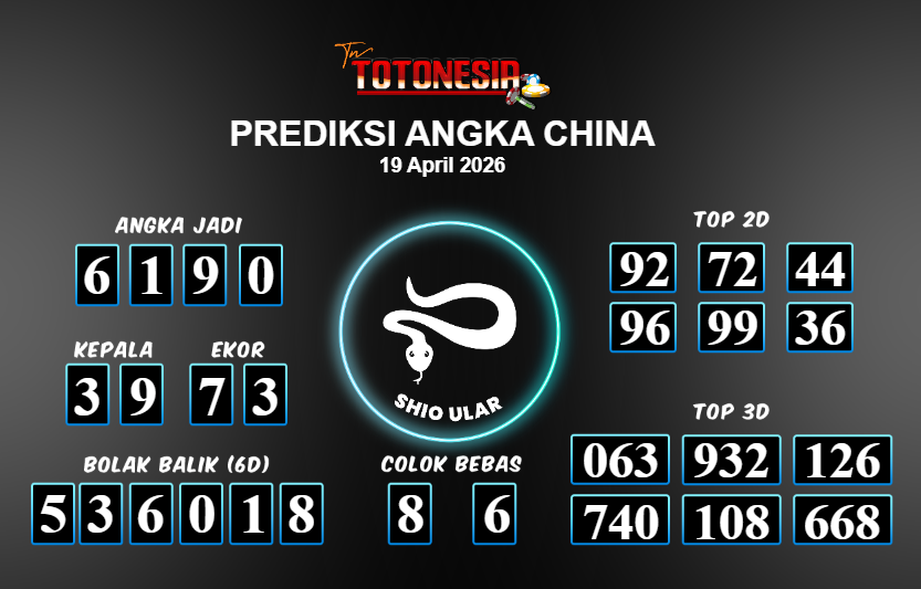 Prediksi CHINA adalah perhitungan nomor togel unggulan dari agen suhu togel yang menyajikan angka prediksi paling akurat, sehingga memberikan banyak keuntungan saat bermain di pasar togel CHINA. TotoNesia adalah prediksi dengan rasio kemenangan tertinggi di Indonesia. Sebagai penyedia togel yang dapat dipercaya, kami bertekad untuk memberikan ramalan togel yang handal dengan hadiah terbesarnya. Maka dari itu, jangan sampai terlewatkan prediksi bandar togel dengan hadiah terbanyak bet 100 dari pasar togel terbaik CHINA Daftar sekarang juga di bandar.