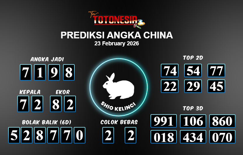 Toto Nesia : Bocoran Prediksi Togel CHINA Tanggal 23 FEBUARI 2026