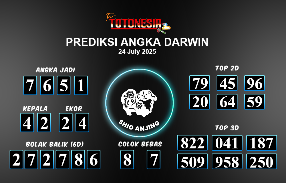 Toto Nesia : Bocoran Prediksi Togel DARWIN Tanggal 24 July 2025