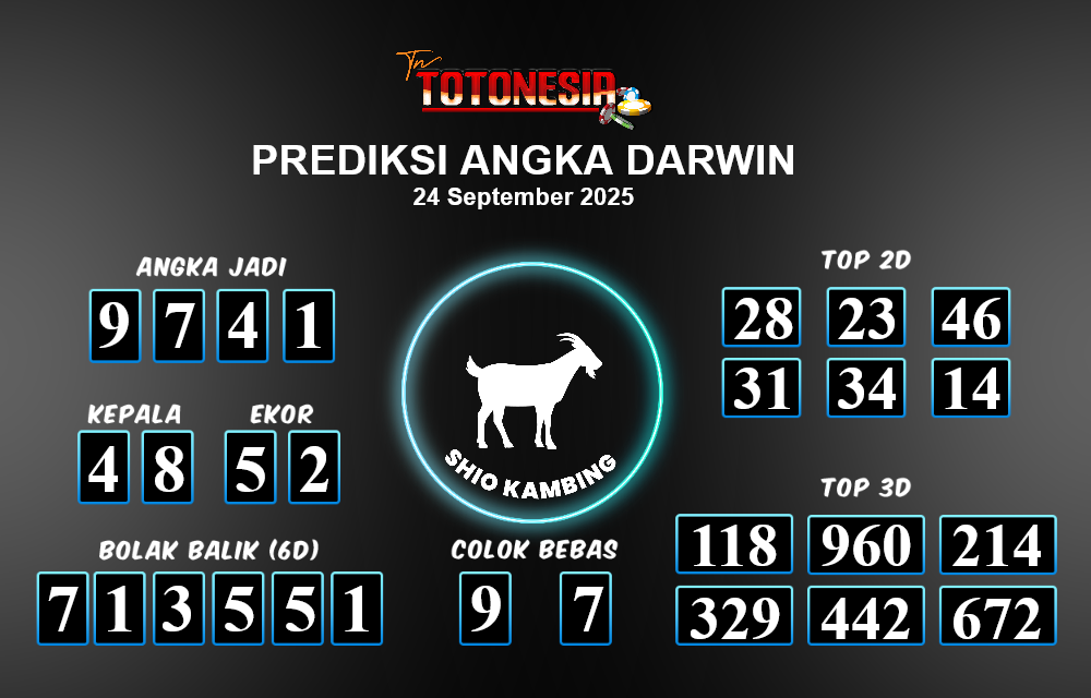 Toto Nesia : Bocoran Prediksi Togel DARWIN Tanggal 24 SEPTEMBER 2025