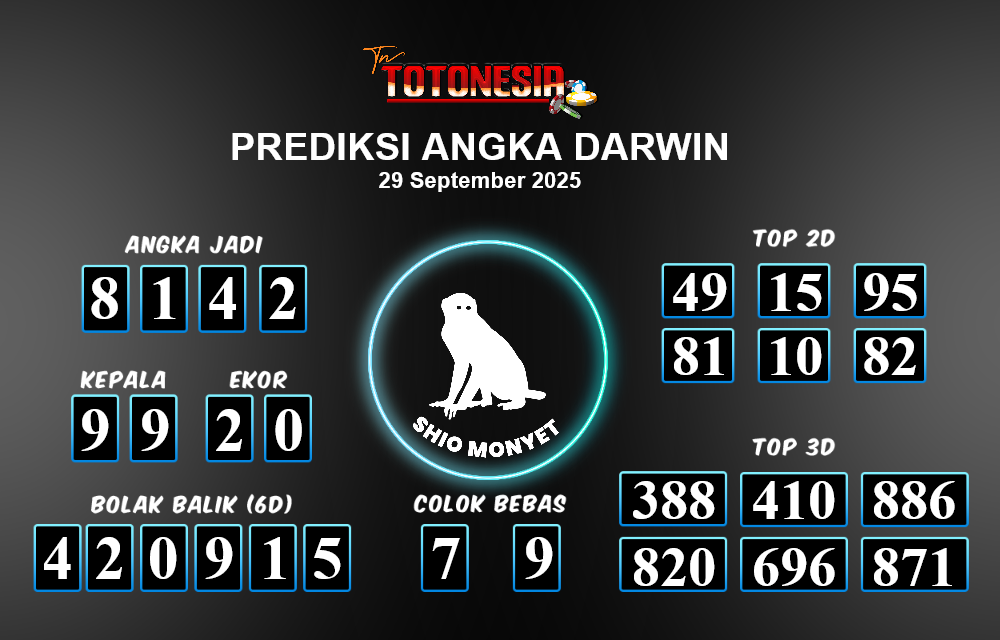 Toto Nesia : Bocoran Prediksi Togel DARWIN Tanggal 29 SEPTEMBER 2025