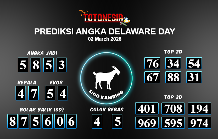 Toto Nesia : Bocoran Prediksi Togel DELAWARE DAY Tanggal 02 MARET 2026