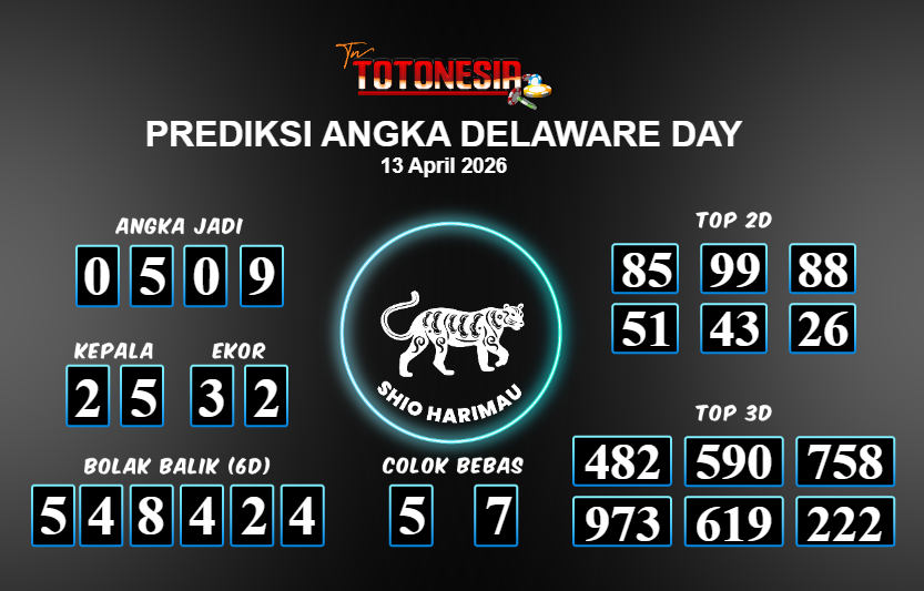 Prediksi DELAWARE DAY adalah perhitungan nomor togel unggulan dari agen suhu togel yang menyajikan angka prediksi paling akurat, sehingga memberikan banyak keuntungan saat bermain di pasar togel DELAWARE DAY. TotoNesia adalah prediksi dengan rasio kemenangan tertinggi di Indonesia. Sebagai penyedia togel yang dapat dipercaya, kami bertekad untuk memberikan ramalan togel yang handal dengan hadiah terbesarnya. Maka dari itu, jangan sampai terlewatkan prediksi bandar togel dengan hadiah terbanyak bet 100 dari pasar togel terbaik DELAWARE DAY Daftar sekarang juga di bandar.