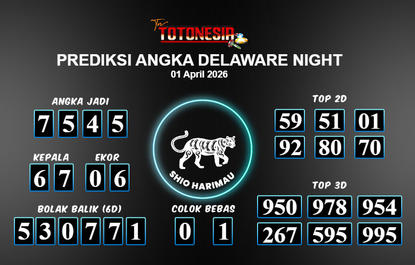 Prediksi DELAWARE NIGHT adalah perhitungan nomor togel unggulan dari agen suhu togel yang menyajikan angka prediksi paling akurat, sehingga memberikan banyak keuntungan saat bermain di pasar togel DELAWARE NIGHT . TotoNesia adalah prediksi dengan rasio kemenangan tertinggi di Indonesia. Sebagai penyedia togel yang dapat dipercaya, kami bertekad untuk memberikan ramalan togel yang handal dengan hadiah terbesarnya. Maka dari itu, jangan sampai terlewatkan prediksi bandar togel dengan hadiah terbanyak bet 100 dari pasar togel terbaik DELAWARE NIGHT Daftar sekarang juga di bandar.