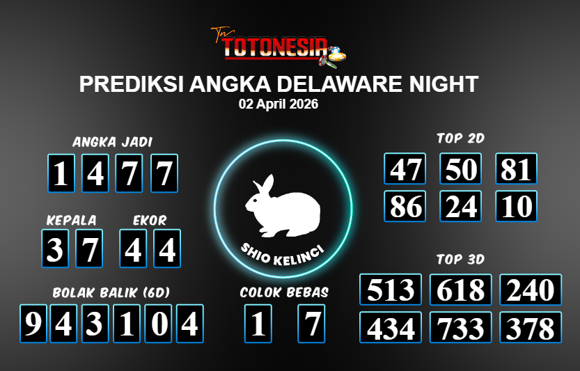 Prediksi DELAWARE NIGHT adalah perhitungan nomor togel unggulan dari agen suhu togel yang menyajikan angka prediksi paling akurat, sehingga memberikan banyak keuntungan saat bermain di pasar togel DELAWARE NIGHT . TotoNesia adalah prediksi dengan rasio kemenangan tertinggi di Indonesia. Sebagai penyedia togel yang dapat dipercaya, kami bertekad untuk memberikan ramalan togel yang handal dengan hadiah terbesarnya. Maka dari itu, jangan sampai terlewatkan prediksi bandar togel dengan hadiah terbanyak bet 100 dari pasar togel terbaik DELAWARE NIGHT Daftar sekarang juga di bandar.