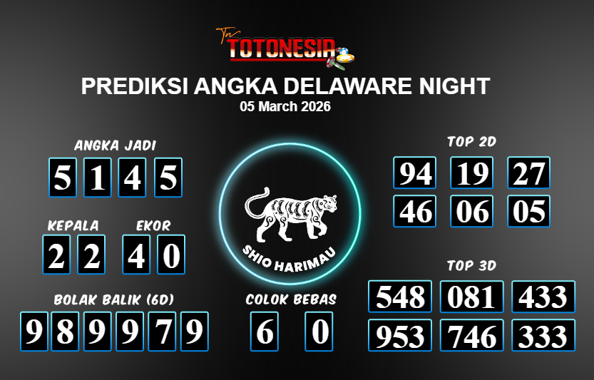 Toto Nesia : Bocoran Prediksi Togel DELAWARE NIGHT Tanggal 05 MARET 2026