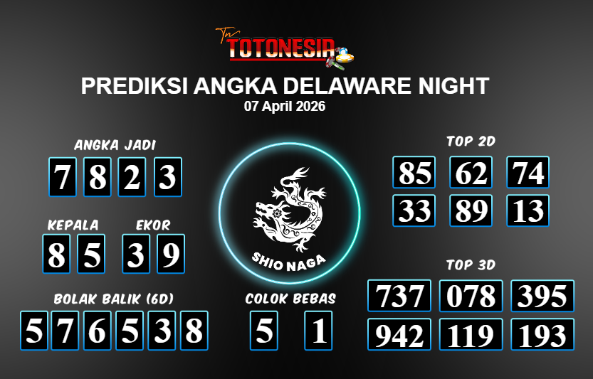 Prediksi DELAWARE NIGHT adalah perhitungan nomor togel unggulan dari agen suhu togel yang menyajikan angka prediksi paling akurat, sehingga memberikan banyak keuntungan saat bermain di pasar togel DELAWARE NIGHT . TotoNesia adalah prediksi dengan rasio kemenangan tertinggi di Indonesia. Sebagai penyedia togel yang dapat dipercaya, kami bertekad untuk memberikan ramalan togel yang handal dengan hadiah terbesarnya. Maka dari itu, jangan sampai terlewatkan prediksi bandar togel dengan hadiah terbanyak bet 100 dari pasar togel terbaik DELAWARE NIGHT Daftar sekarang juga di bandar.