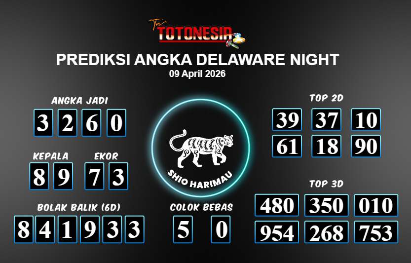 Prediksi DELAWARE NIGHT adalah perhitungan nomor togel unggulan dari agen suhu togel yang menyajikan angka prediksi paling akurat, sehingga memberikan banyak keuntungan saat bermain di pasar togel DELAWARE NIGHT . TotoNesia adalah prediksi dengan rasio kemenangan tertinggi di Indonesia. Sebagai penyedia togel yang dapat dipercaya, kami bertekad untuk memberikan ramalan togel yang handal dengan hadiah terbesarnya. Maka dari itu, jangan sampai terlewatkan prediksi bandar togel dengan hadiah terbanyak bet 100 dari pasar togel terbaik DELAWARE NIGHT Daftar sekarang juga di bandar.
