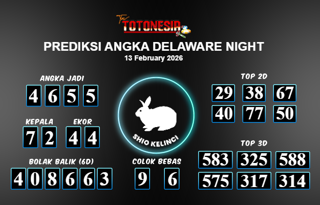 Toto Nesia : Bocoran Prediksi Togel DELAWARE NIGHT Tanggal 13 FEBUARI 2026