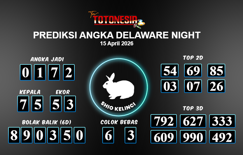 Prediksi DELAWARE NIGHT adalah perhitungan nomor togel unggulan dari agen suhu togel yang menyajikan angka prediksi paling akurat, sehingga memberikan banyak keuntungan saat bermain di pasar togel DELAWARE NIGHT . TotoNesia adalah prediksi dengan rasio kemenangan tertinggi di Indonesia. Sebagai penyedia togel yang dapat dipercaya, kami bertekad untuk memberikan ramalan togel yang handal dengan hadiah terbesarnya. Maka dari itu, jangan sampai terlewatkan prediksi bandar togel dengan hadiah terbanyak bet 100 dari pasar togel terbaik DELAWARE NIGHT Daftar sekarang juga di bandar.