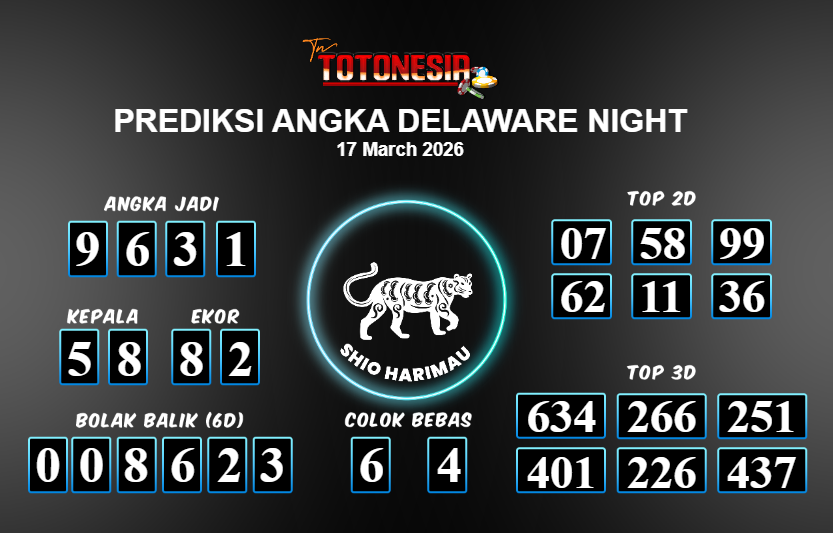 Prediksi DELAWARE NIGHT adalah perhitungan nomor togel unggulan dari agen suhu togel yang menyajikan angka prediksi paling akurat, sehingga memberikan banyak keuntungan saat bermain di pasar togel DELAWARE NIGHT . TotoNesia adalah prediksi dengan rasio kemenangan tertinggi di Indonesia. Sebagai penyedia togel yang dapat dipercaya, kami bertekad untuk memberikan ramalan togel yang handal dengan hadiah terbesarnya. Maka dari itu, jangan sampai terlewatkan prediksi bandar togel dengan hadiah terbanyak bet 100 dari pasar togel terbaik DELAWARE NIGHT Daftar sekarang juga di bandar.