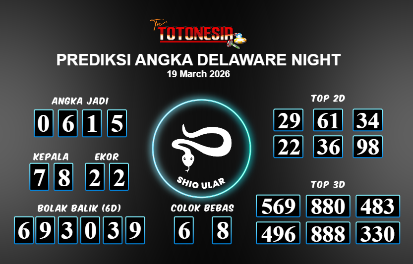 Prediksi DELAWARE NIGHT adalah perhitungan nomor togel unggulan dari agen suhu togel yang menyajikan angka prediksi paling akurat, sehingga memberikan banyak keuntungan saat bermain di pasar togel DELAWARE NIGHT . TotoNesia adalah prediksi dengan rasio kemenangan tertinggi di Indonesia. Sebagai penyedia togel yang dapat dipercaya, kami bertekad untuk memberikan ramalan togel yang handal dengan hadiah terbesarnya. Maka dari itu, jangan sampai terlewatkan prediksi bandar togel dengan hadiah terbanyak bet 100 dari pasar togel terbaik DELAWARE NIGHT Daftar sekarang juga di bandar.