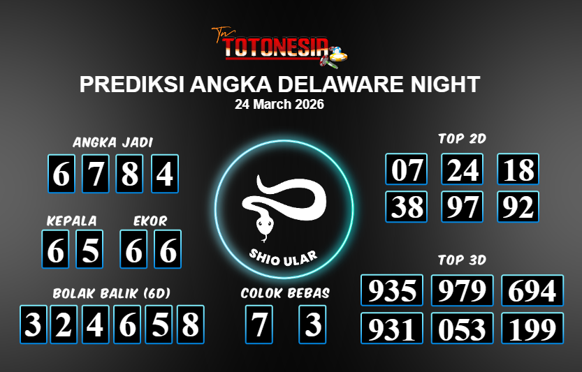 Toto Nesia : Bocoran Prediksi Togel DELAWARE NIGHT Tanggal 24 MARET 2026