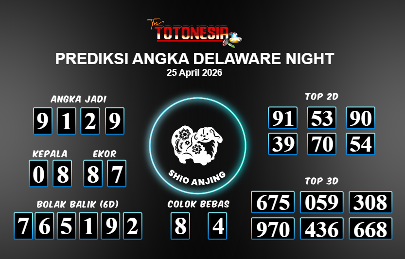 Prediksi DELAWARE NIGHT adalah perhitungan nomor togel unggulan dari agen suhu togel yang menyajikan angka prediksi paling akurat, sehingga memberikan banyak keuntungan saat bermain di pasar togel DELAWARE NIGHT . TotoNesia adalah prediksi dengan rasio kemenangan tertinggi di Indonesia. Sebagai penyedia togel yang dapat dipercaya, kami bertekad untuk memberikan ramalan togel yang handal dengan hadiah terbesarnya. Maka dari itu, jangan sampai terlewatkan prediksi bandar togel dengan hadiah terbanyak bet 100 dari pasar togel terbaik DELAWARE NIGHT Daftar sekarang juga di bandar.