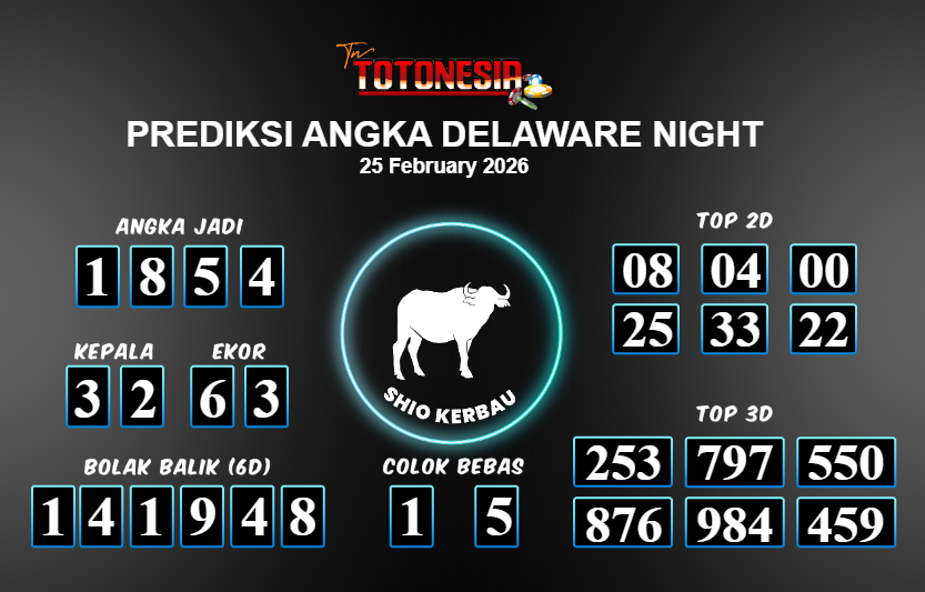 Toto Nesia : Bocoran Prediksi Togel DELAWARE NIGHT Tanggal 25 FEBUARI 2026