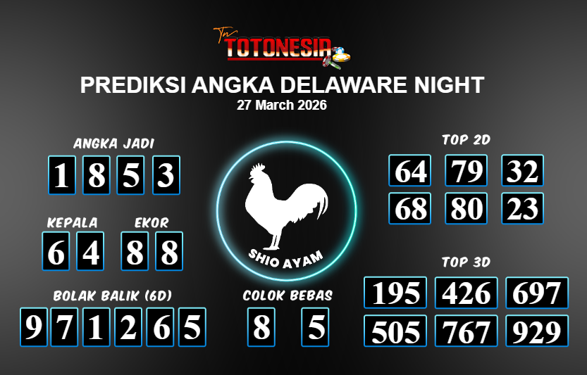 Toto Nesia : Bocoran Prediksi Togel DELAWARE NIGHT Tanggal 27 MARET 2026