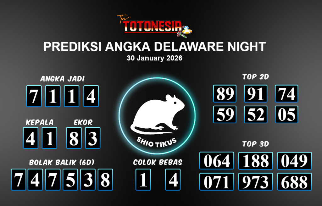 Prediksi DELAWARE NIGHT adalah perhitungan nomor togel unggulan dari agen suhu togel yang menyajikan angka prediksi paling akurat, sehingga memberikan banyak keuntungan saat bermain di pasar togel DELAWARE NIGHT. TotoNesia adalah prediksi dengan rasio kemenangan tertinggi di Indonesia. Sebagai penyedia togel yang dapat dipercaya, kami bertekad untuk memberikan ramalan togel yang handal dengan hadiah terbesarnya. Maka dari itu, jangan sampai terlewatkan prediksi bandar togel dengan hadiah terbanyak bet 100 dari pasar togel terbaik DELAWARE NIGHT Daftar sekarang juga di bandar.