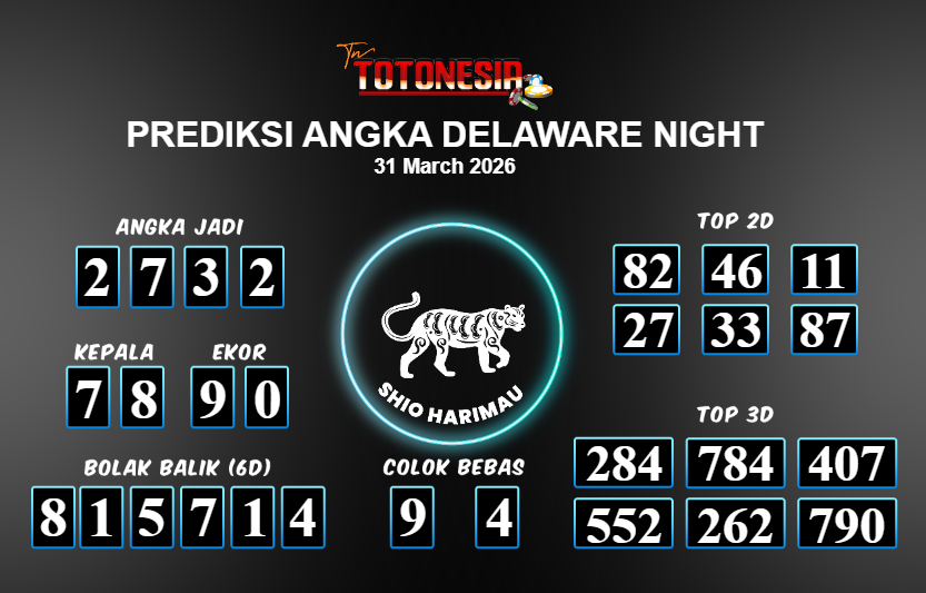 Prediksi DELAWARE NIGHT adalah perhitungan nomor togel unggulan dari agen suhu togel yang menyajikan angka prediksi paling akurat, sehingga memberikan banyak keuntungan saat bermain di pasar togel DELAWARE NIGHT . TotoNesia adalah prediksi dengan rasio kemenangan tertinggi di Indonesia. Sebagai penyedia togel yang dapat dipercaya, kami bertekad untuk memberikan ramalan togel yang handal dengan hadiah terbesarnya. Maka dari itu, jangan sampai terlewatkan prediksi bandar togel dengan hadiah terbanyak bet 100 dari pasar togel terbaik DELAWARE NIGHT Daftar sekarang juga di bandar.