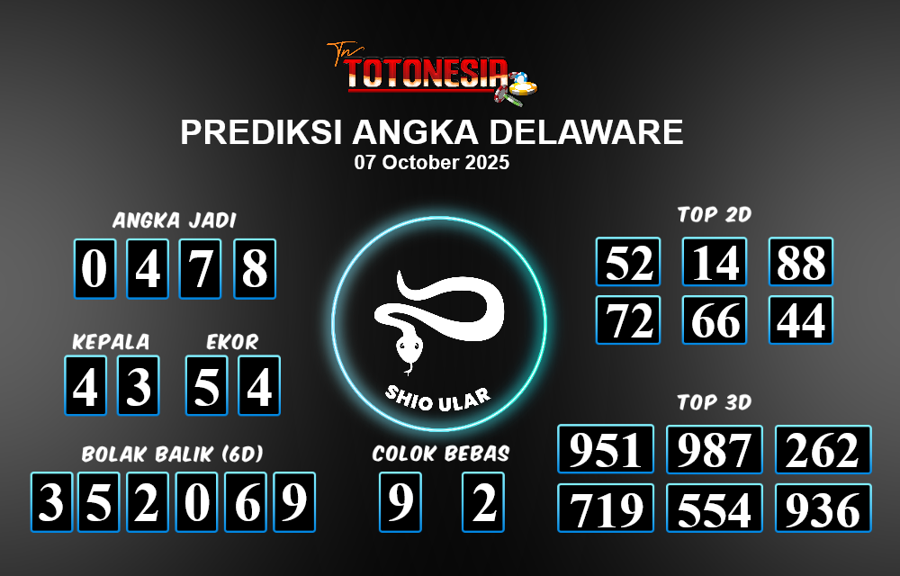 Toto Nesia : Bocoran Prediksi Togel DELAWARE Tanggal 07 OKTOBER 2025