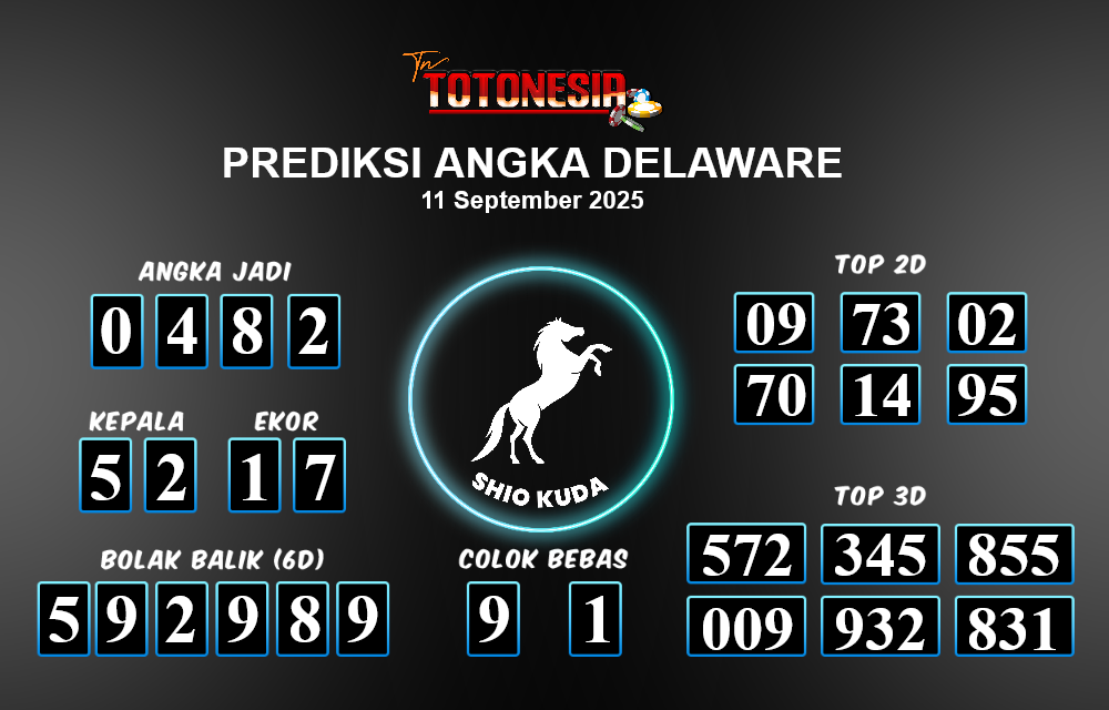 Toto Nesia : Bocoran Prediksi Togel DELAWARE Tanggal 11 SEPTEMBER 2025