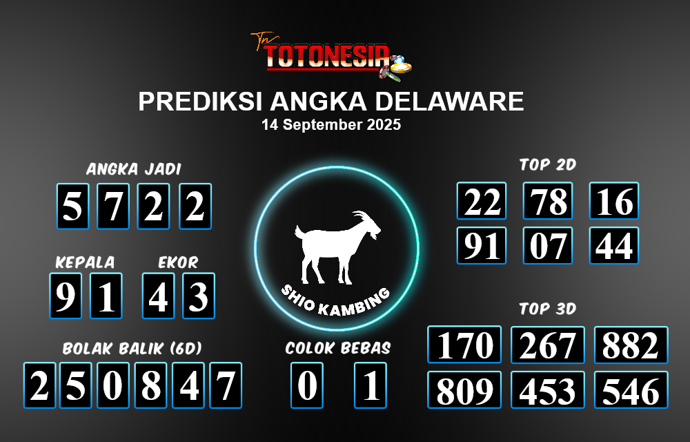 Toto Nesia : Bocoran Prediksi Togel DELAWARE Tanggal 14 SEPTEMBER 2025