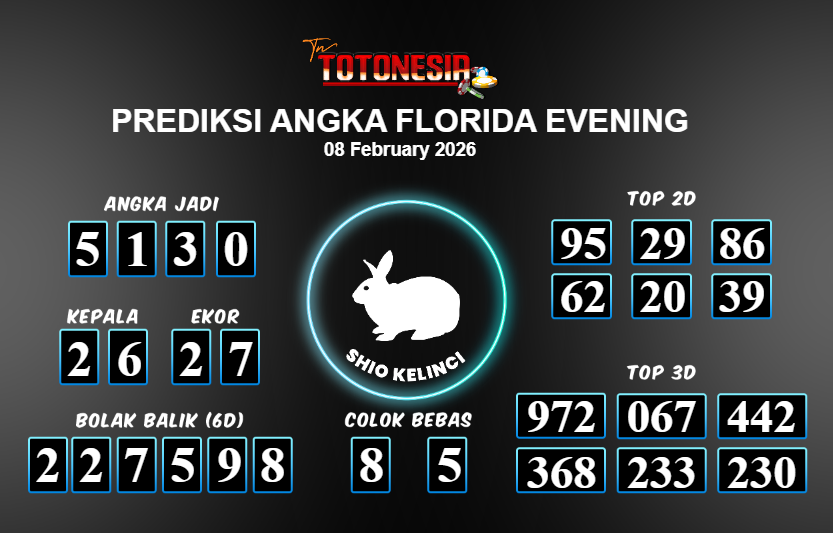 Toto Nesia : Bocoran Prediksi Togel FLORIDA EVENING Tanggal 08 FEBUARI 2026