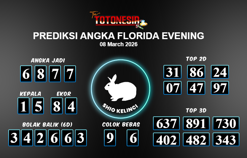 Toto Nesia : Bocoran Prediksi Togel FLORIDA EVENING Tanggal 08 MARET 2026